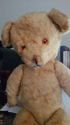 | VINTAGE ANTIQUE TEDDY BEAR. 1930'S, 1940'S 1950'S. RUBBER MOUTH AND NOSE. 50'S |