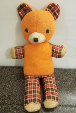 | Vintage Teddy Bear 24" Flannel & Orange 1950s Plush |
