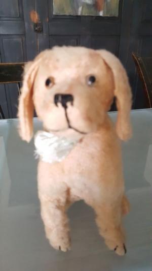 | OLD VINTAGE ANTIQUE SEATED WHITE MOHAIR TERRIER DOG TOY (TEDDY BEAR) |