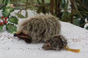 | Pair of 2 Vintage Mohair STEIFF HEDGEHOG MOMMY & BABY Toy Gold Ear Button 056109 |