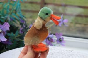 | Old Vintage Antique Mohair STEIFF DUCK Bird Toy - Glass Eyes - Wood Straw Filled |