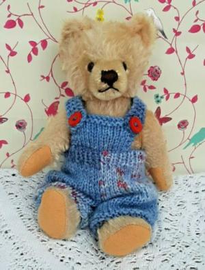 | **BEAR KNITS** Hand Knitted clothes blue random shades dungarees to fit 9" teddy |