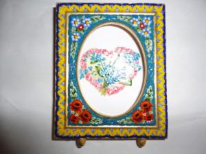 Vintage brass Micro Mosaic Glass tile Picture Frame Double Border ITALY Flowers