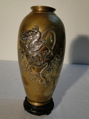 Classic Antique Japanese Brass Dragon Vase Japan c1900