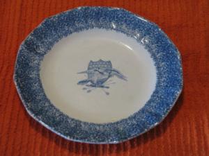 English Softpaste Spongeware Eagle & Shield Transfer Decorated Plate - Mint Cond
