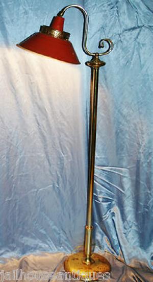 Vintage Mid Century Bridge Arm Metal Brass Floor Lamp Painted shade Country Chic