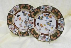 Antique Ashworth Bros Ironstone Plate Hand Painted Oriental Flowers Urns Gold x2