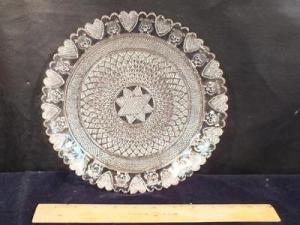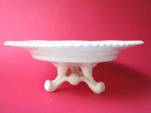 Sowerby Queens Ivory (coloured) ware Pressed Glass Cake Dish Compote c1890