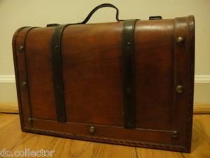 VINTAGE LOOK WOODEN TRAIN CASE TRUNK WOOD SUITCASE TRAVEL CHEST