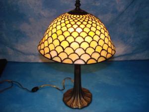 Lovely ATQ Repro Sm Dale Tiffany Signed Table Lamp Oyster Shell Opalescent