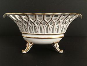 ANTIQUE VINTAGE OLD PARIS PORCELAIN RETICULATED BASKET FOOTED BOWL AND LINER