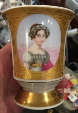 ANTIQUE PORCELAIN HAND PAINTED PORTRAIT TEA CUP Signed Unknown Gorgeous Girl