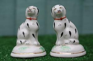 SUPERB PAIR ORIG: 19thC STAFFORDSHIRE MINIATURE PORCELLANEOUS SEATED DOGS c1880s
