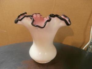 FENTON BLACK ROSE CREST RUFFLED VASE