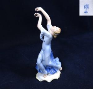 ANTIQUE KARL ENS GERMAN ART DECO DANCER PORCELAIN FIGURINE BLUE MARK 8.75" TALL