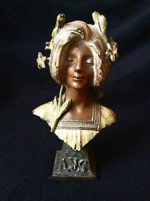 Beautiful Antique Miniature "LYS" French Art Nouveau Bust Bronze J Causse Style