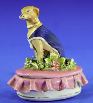 ANTIQUE CONTE BOEHME FAIRINGS PORCELAIN PATCH TRINKET BOX SEATED DOG