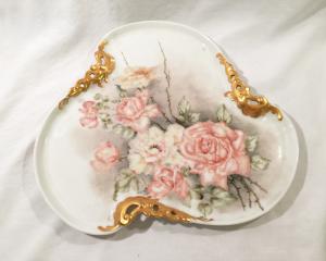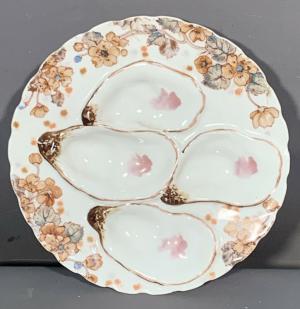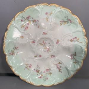 Antique FRENCH LIMOGES Old FLOWER Painting PORCELAIN Nautical OYSTER PLATE