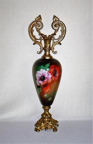 ~Large~ ANTIQUE VICTORIAN MANTLE URN HAND PAINTED PORCELAIN LARGE POPPIES ORNATE