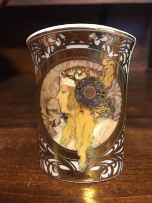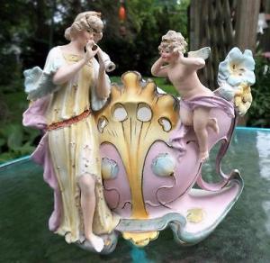 Antique Art Nouveau Deco Porcelain Toothpick Match Holder Beautiful Ladies Mucha