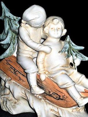 ANTIQUE GERMAN VICTORIAN SCHNEIDER SNOW BABY GIRL & BOY ON SLED BISQUE FIGURINE