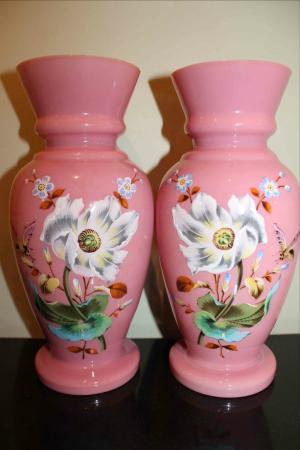 PAIR of BRISTOL GLASS VASES, EXQUISITELY Painted, Dated 1742 (or 1792)