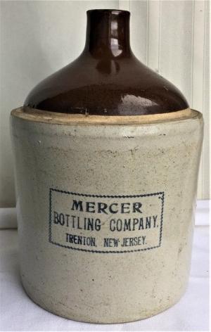 19th Century PENNA Advertising Hotel Whiskey Jug Stoneware Wire Bail Handle