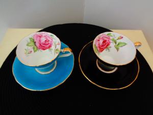 AYNSLEY LARGE PINK ROSES TWO TEACUPS AND SAUCERS