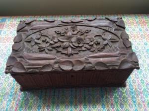 BLACK FOREST Antique Black Walnut CARVED BOX WITH FLORAL SPRAY TO TOP