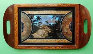 Wonderful 1930s Art Deco Butterfly Wing & Parquetry Wooden Tray Brazil