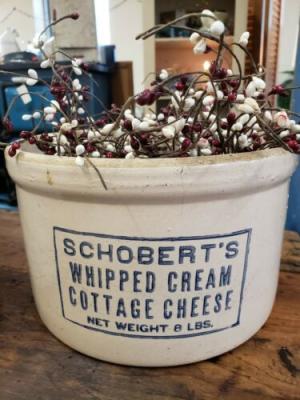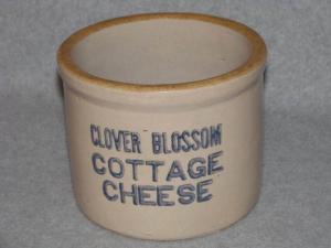 Clover Blossom Cottage Cheese Crock Tub Glazed Stoneware Crock 5"Tall 6"Wide EUC