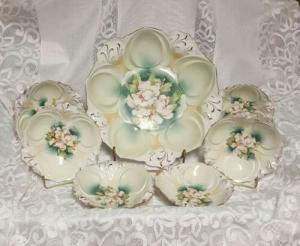 Antique Porcelain Berry Bowl Set R S Prussia STUNNING Hand Painted