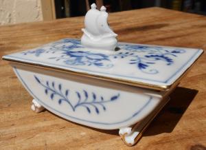 Vintage Meissen Porcelain Blue Onion Nautical Covered Candy Box Marked