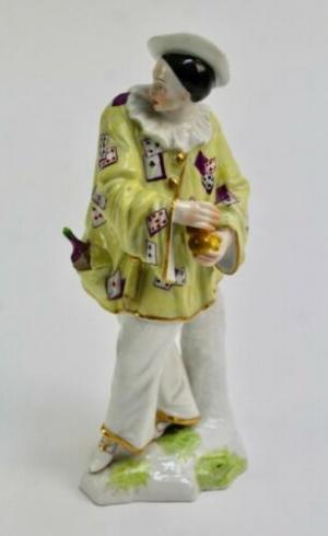 FINE ANTIQUE GERMAN OR FRENCH HAND PAINTED PORCELAIN DRUNK PIERROT FIGURE