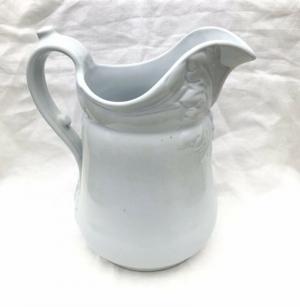 Antique White Ironstone Pitcher John Maddock Burslem Son 1860s Unknown Leaves