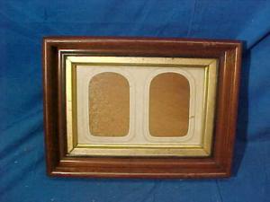 19thc VICTORIAN Era DOUBLE TINTYPE -CDV Deep WALNUT Picture FRAME w Orig MATTE