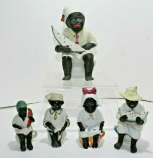Lot of vintage / antique black americana figurines all sitting on chamber pots