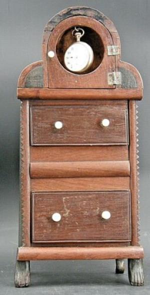 ANTIQUE ca.1890 Pocket Watch Hutch hand-carved & painted Tramp Outsider Folk Art