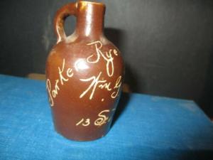 STONEWARE MINI SCRATCH JUG PARKER RYE A, WEISS MERIDIAW ST WHISKEY E143 PL