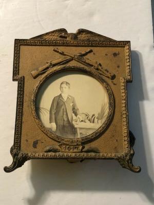 1917 Cast Iron WW I Frame-Photo Cold Paint Guns-Eagle Schumacher NY Killed 3 Day