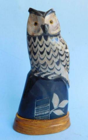 Beautiful Hand Carved Buffalo Horn Bird Owl Figurine South Asia 1950s