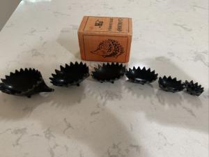 Vintage MCM Metal Stacking Hedgehog Ashtrays Set of 6 Walter Bosse Style W/Box