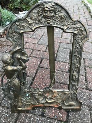 Art Nouveau Lady Green Man floral Cast Metal Bronze picture Frame Mirror Vi