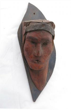 Vintage Folk Art Carved Wood Indian Head Match Holder