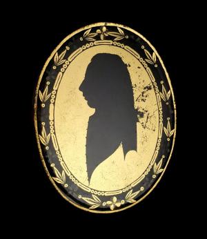 ANTIQUE 18thC VERRE EGLOMAISE SILHOUETTE PORTRAIT BRITISH REVOLUTIONARY WAR CAPT