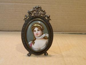 Antique Hand Painted Portrait Queen Louise Prussia in Ornate 3 1/234 Brass Frame