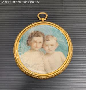 Antique Hand Painted Portrait Of Two Children Signed 1903 Round Shape Gold To