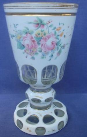 BEAUTIFUL ANTIQUE GLASS GOBLET or CUP SIGNED LANDECH 1859 NR!