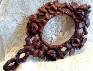 AWESOME HAND CARVED BARBOLA ROSES~BLACK FOREST? HAND MIRROR, PICTURE FRAME
