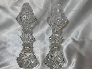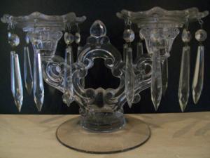 2 Antique Glass Candle Stick Holders Candelabra Prism
